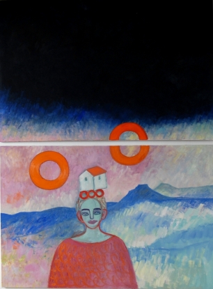 Das Haus auf den Kopf - 2 Teilig 110 x 135 cm, Öl auf Leinwand, 2008